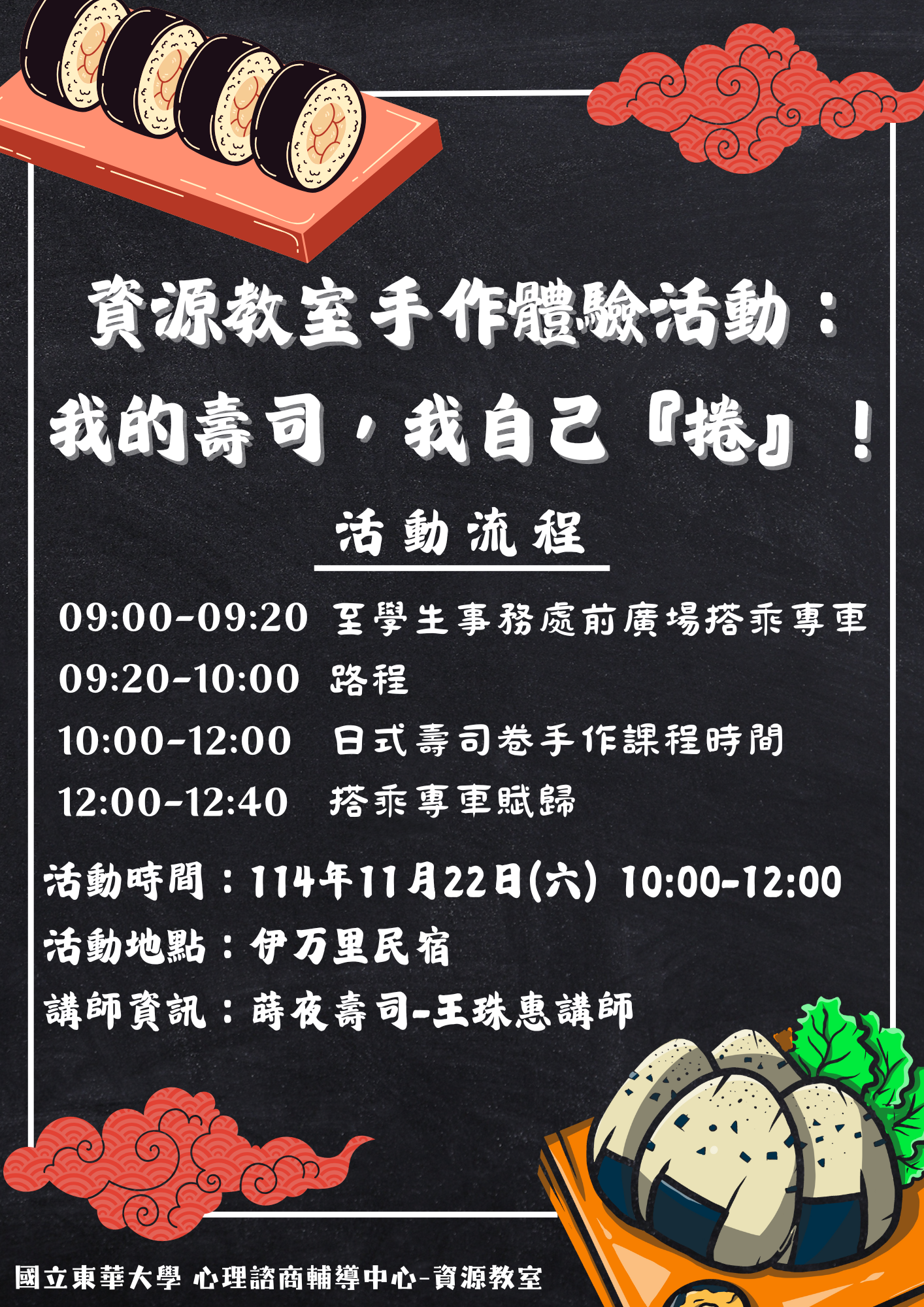 【活動公告】:諮商中心資源教室手作體驗活動:【我的壽司,我自己『捲』!】